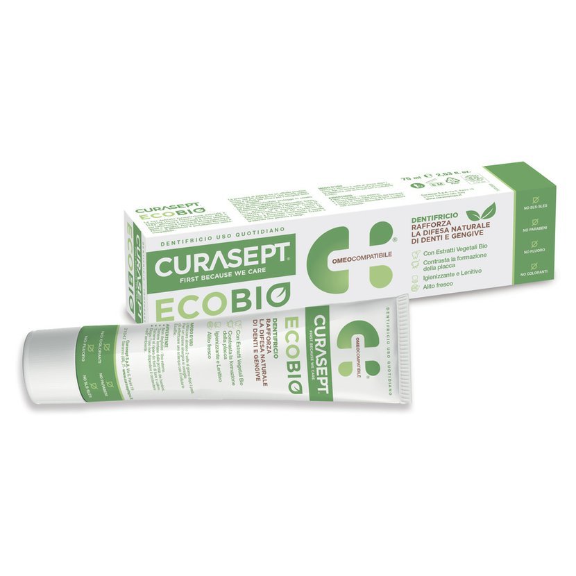 Stejně jako ústní voda ECOBIO je i zubní pasta vhodná při homeopatické léčbě, protože neobsahuje mentol a fluorid.