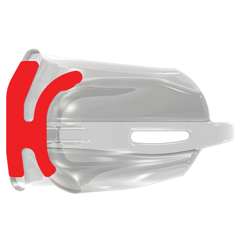• velká základna otevírá dýchací cesty, poskytuje pohodlí čelistím a snižuje cvakání zubů
