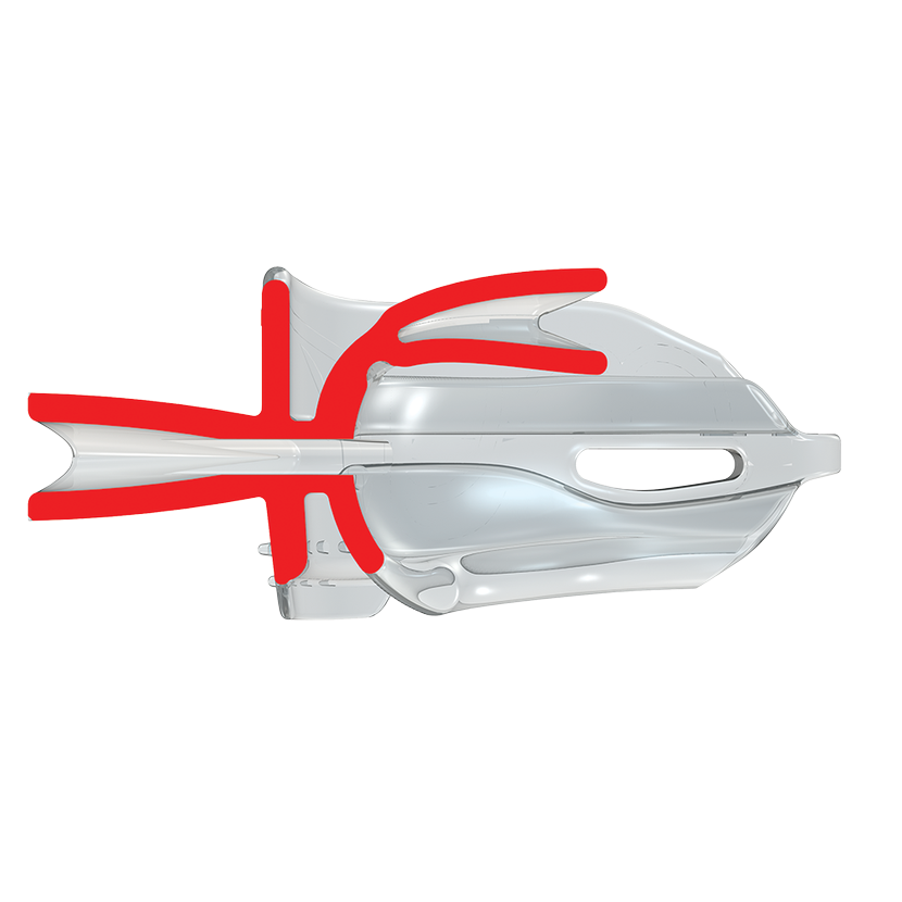 2. Lehce se zakousněte do obou stran aparátu TLJ, abyste stlačili vzduchové bubliny. Vydržte po dobu tří nádechů, přičemž držte rty u sebe a dýchejte nosem.