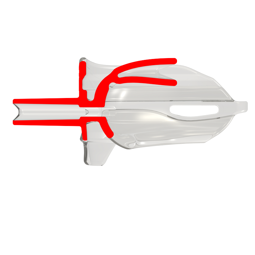 1. Umístěte aparát TLJB do úst tak, aby trubička pro přitlačení jazyka (Tongue press tube) směřovala nahoru