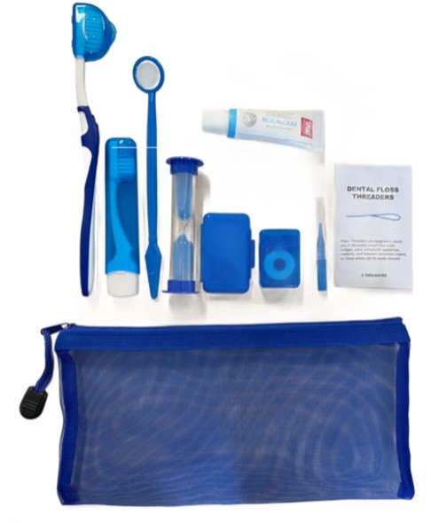 Praktická sada pomůcek na čištění zubů s rovnátky.