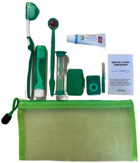 Praktická sada pomůcek na čištění zubů s rovnátky.