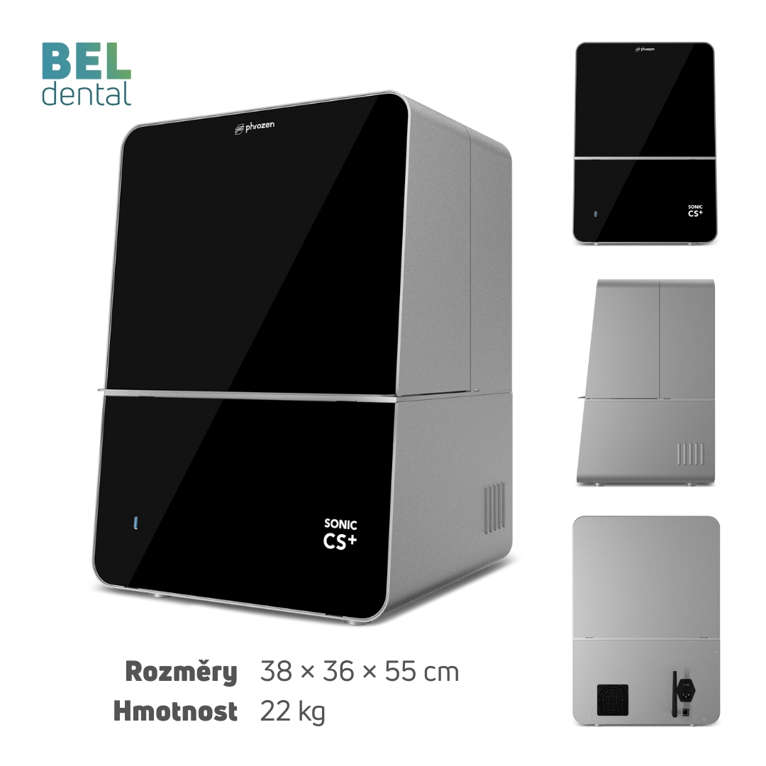 Phrozen Sonic CS+ je první stomatologická 3D tiskárna od tohoto tchajwanského výrobce. Jedná se sofistikovaný výrobek idealní do ordinací, kterým umožní rychlou a vysoce přesnou výrobu provizorních korunek, dentálních modelů, chirurgických šablon, dlah a dalších dentálních výrobků.