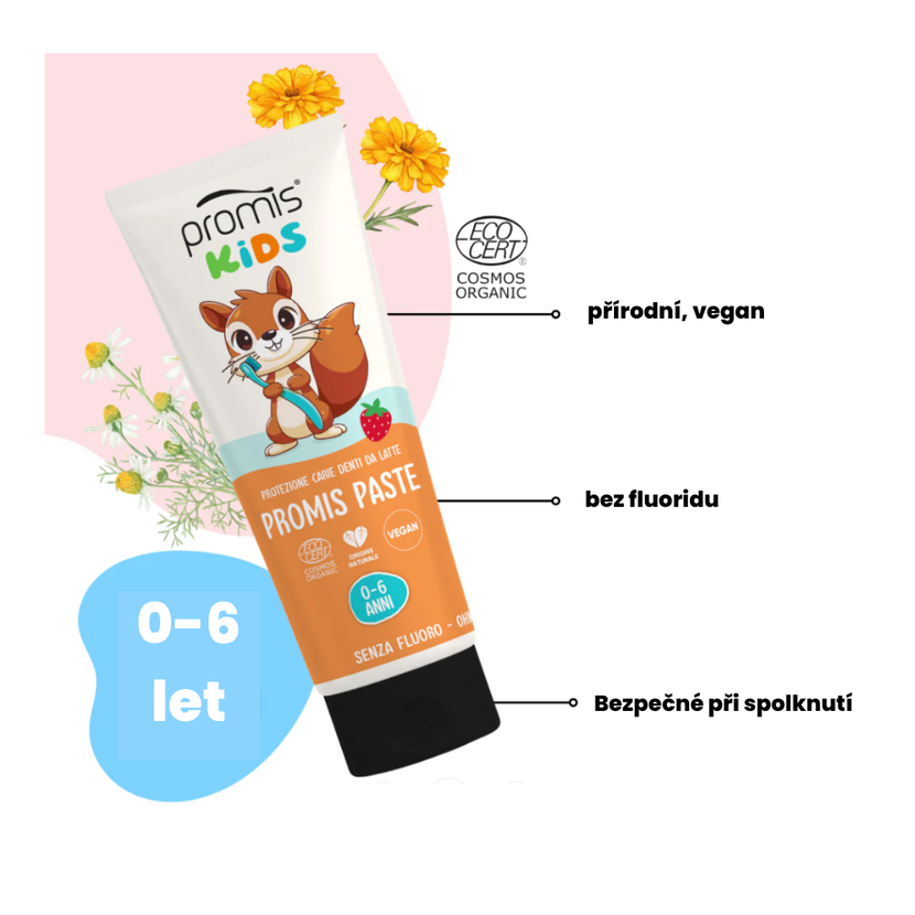 První zoubky jsou malé, jemné a vyžadují zvláštní péči. Zubní pasta promis Kids 0–6 byla vyvinuta speciálně pro ochranu mléčných zubů od prvního úsměvu – šetrně, přirozeně a bezpečně.