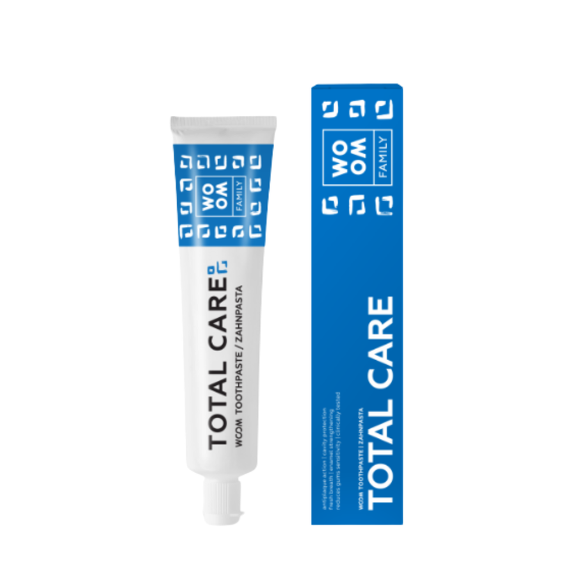 WOOM FAMILY TOTAL CARE posilující zubní pasta pro komplexní péči. Účinně snižuje citlivost zubů a působí antibakteriálně. Zabraňuje tvorbě plaku a zubního kamene. Posiluje a zpevňuje dásně. Zanechává dlouhotrvající pocit čistoty a svěžesti. Účinky klinicky prokázány.