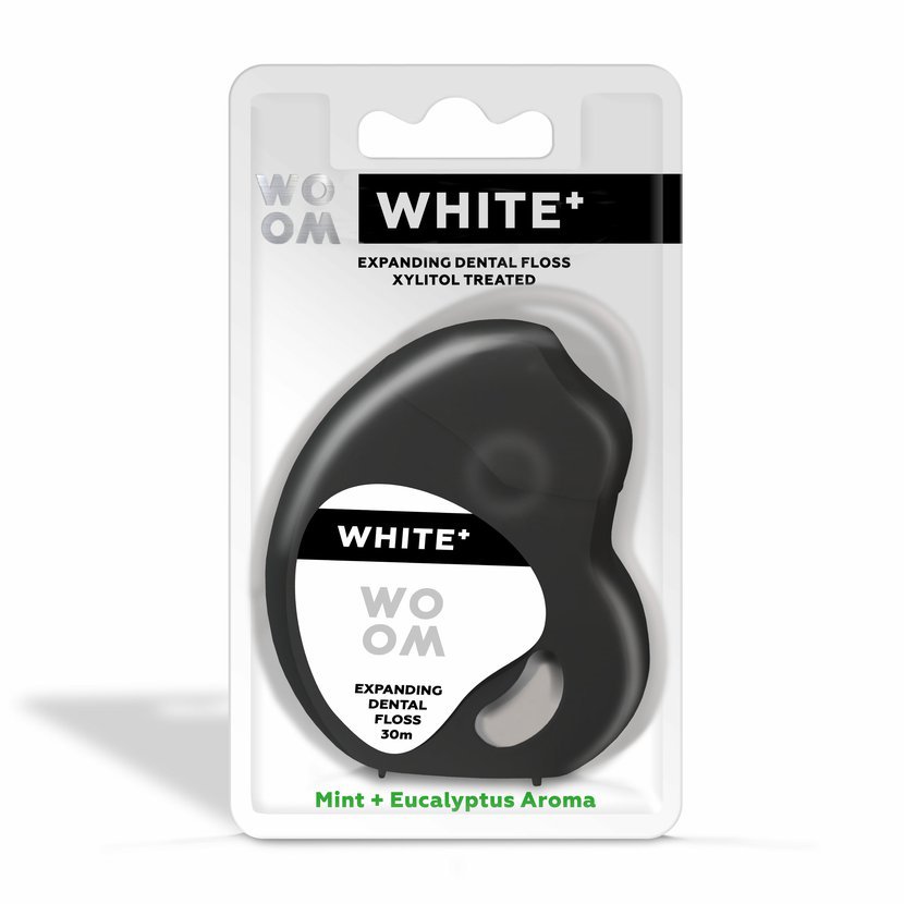 WOOM WHITE+ expandující zubní nit s vlákny Riser® odstraňuje až o 40 % více plaku než běžná nit, neboť vlákna během použití nabydou na objemu. Tato zubní nit omezuje krvácení dásní o 42 % efektivněji než průměrná standardní nit. Voskováno přírodním voskem, chrání tkáně před viry a patogenními bakteriemi. Máta a eukalyptus dodávají pocit svěžesti v ústech. Impregnováno xylitolem pro prevenci zubního kazu.