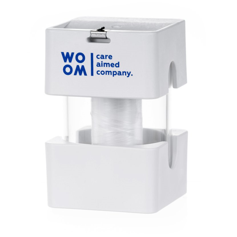 Použití: Určeno pro profesionální použití v zubních ordinacích k držení 250m náplní dentálních nití WOOM.